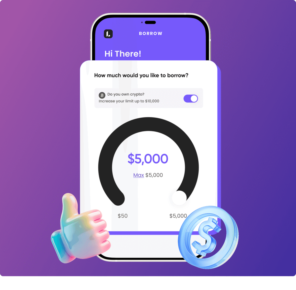 To take out a crypto-backed loan, you must connect your crypto wallet to the Lenme App. Lenme supports more than 50 crypto currencies such as Bitcoin, Ethereum and much more. The steps are really simple! All you have to do is the following steps to get a personal loan up to $10,000:Â